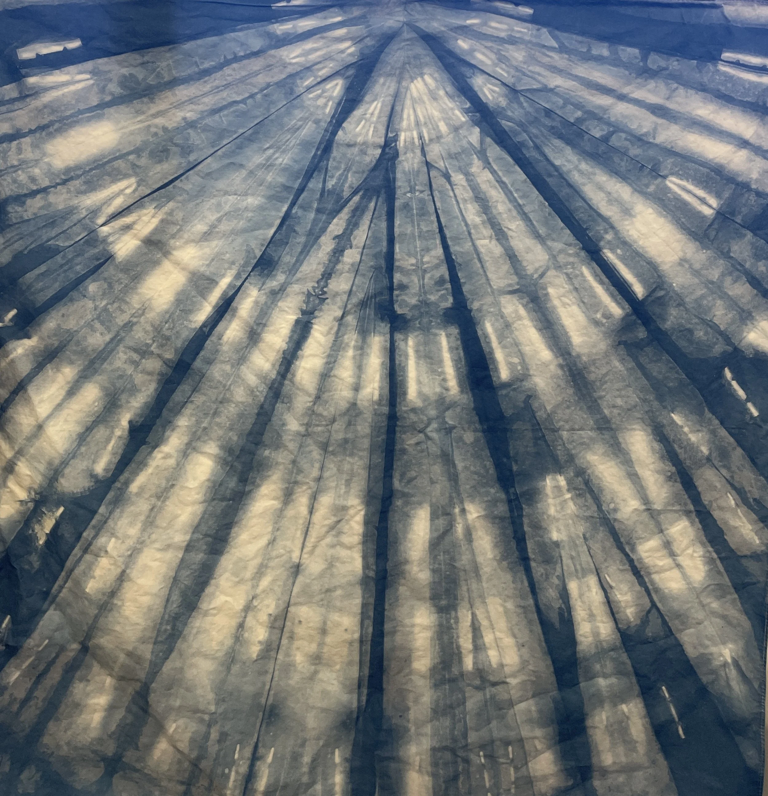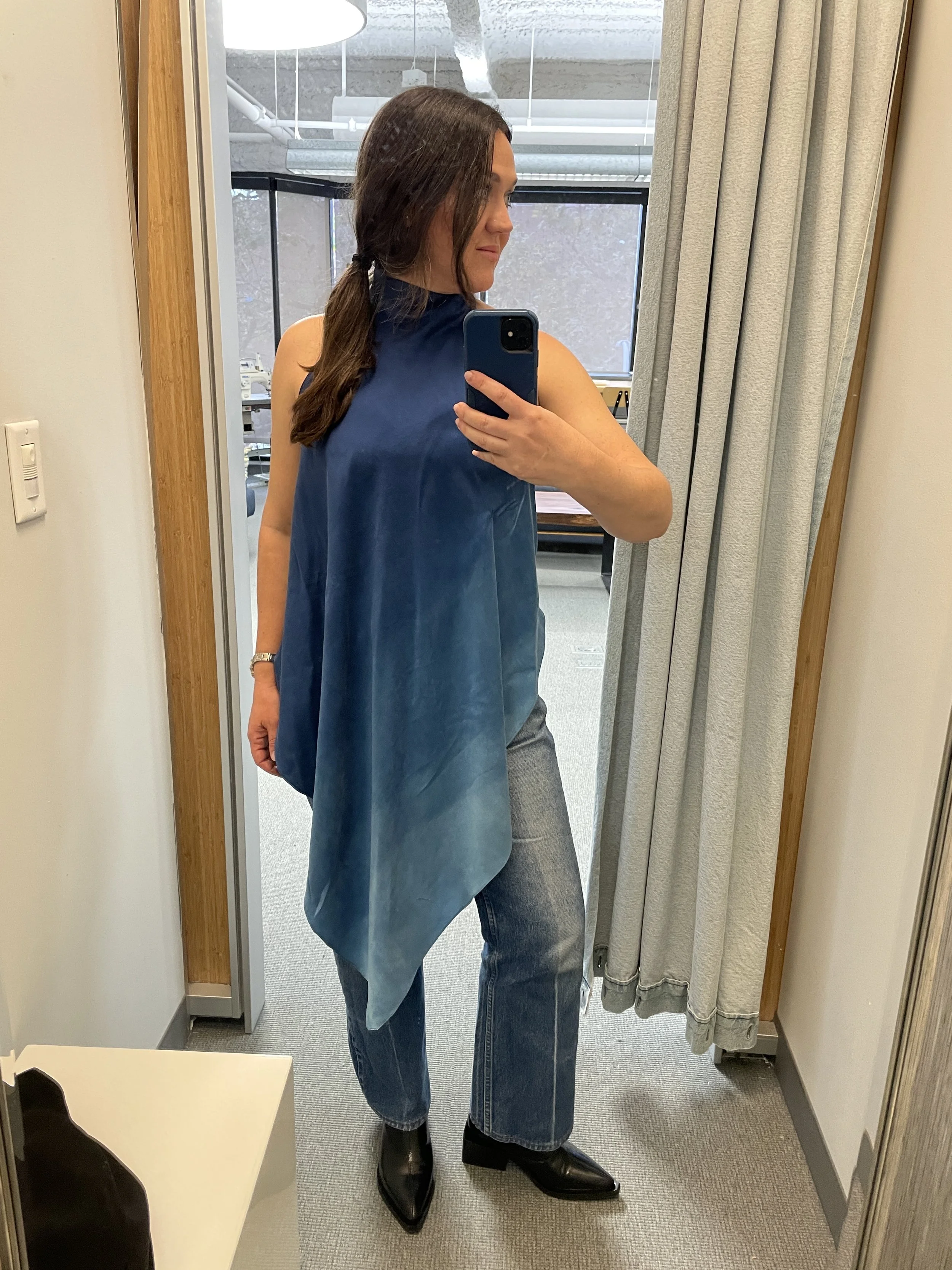 Timed dip-dye to create an ombre affect on sand-washed silk.